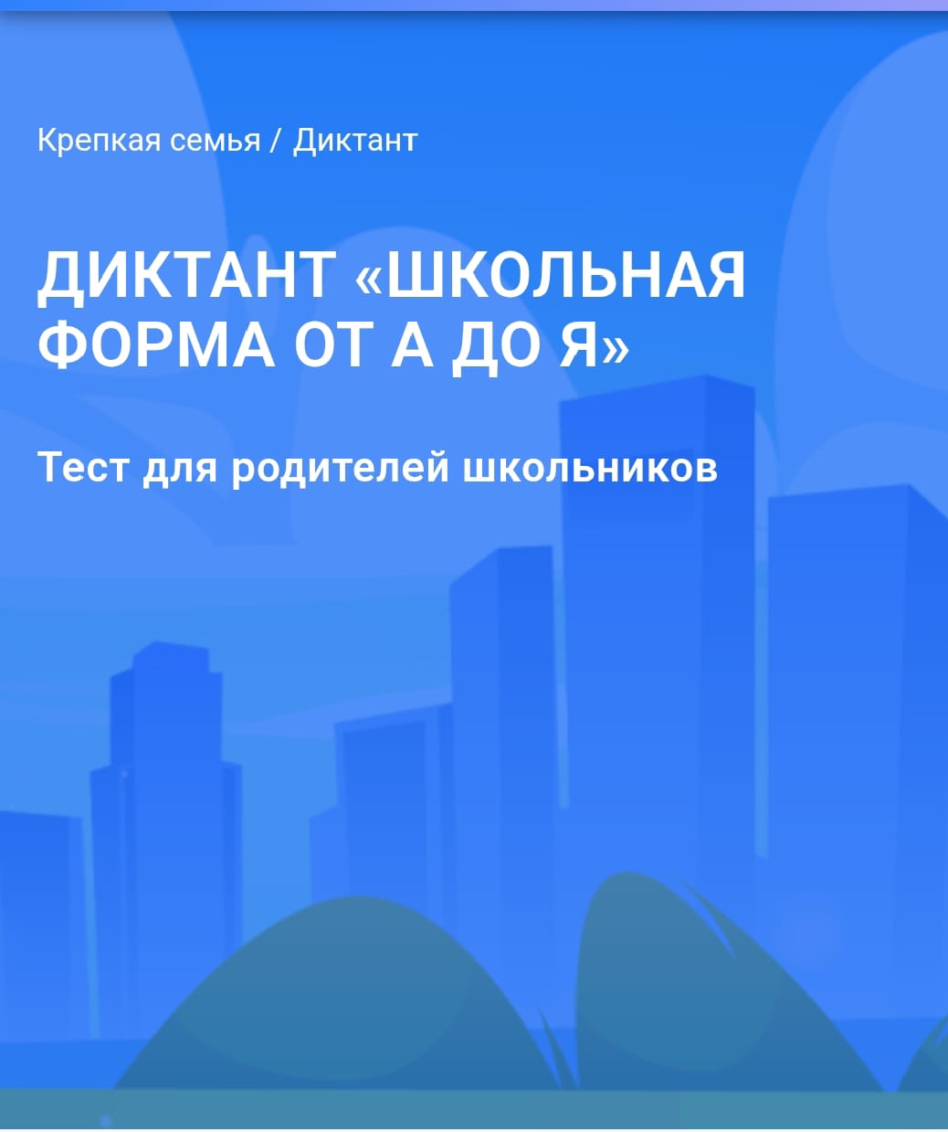 «Единая Россия» запускает всероссийский онлайн-диктант «Школьная форма от А до Я» 1 сентября, в День знаний, стартовала масштабная федеральная просветительская акция – Всероссийский онлайн-диктант «Школьная форма от А до Я». Мероприятие проводится в рамках партийного проекта «Единой России» «Крепкая семья» при поддержке Государственной Думы ФС РФ, «Роскачества», Партии «Единая Россия» и ряда авторитетных отраслевых партнёров. Принять участие в онлайн-диктанте могут все жители страны. К акции приглашаются школьники, родители школьников, студенты, эксперты текстильной отрасли и все граждане, заинтересованные в повышении потребительской грамотности. Участникам предстоит ответить на вопросы, охватывающие ключевые аспекты выбора формы, включая знание обязательных требований ГОСТов, понимание свойств тканей, критерии оценки качества пошива, практические рекомендации по подбору одежды для обеспечения комфорта и здоровья ребенка. Диктант будет доступен на специализированной онлайн-платформе с 1 по 30 сентября. Для участия необходимо любое устройство с доступом в интернет. Прохождение займет не более 15-20 минут. По итогам акции будут определены три самых активных региона России, показавших наибольшую вовлеченность и численность участников. Регионы-лидеры получат ценные подарки и призы от спонсоров акции и координатора федерального партийного проекта «Единой России» «Крепкая семья» Татьяны Буцкой. | |
